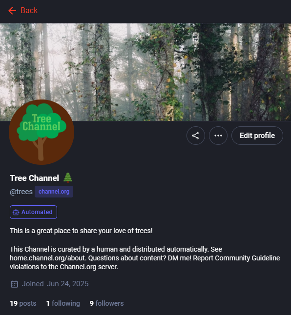 Channels automatically generate a Channel hashtag based on the Channel username. Whilst this is the Tree Channel, @tree@channel.org didn't sound as good as @trees@channel.org. So, the hashtag become #TreesChannel.