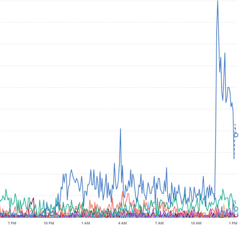 They've just shared this image which shows data collected at 5 minute intervals over the last day, the blue line represents UK sign-ups: